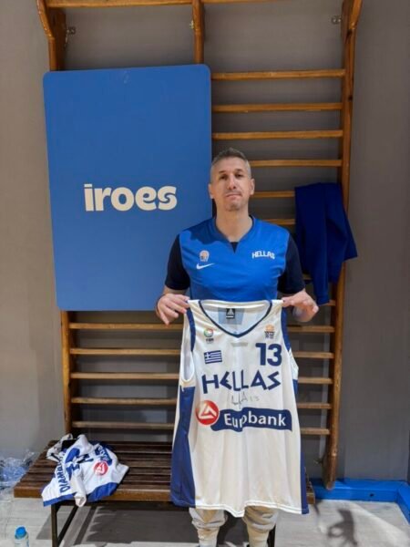 Dimitris MoraitisMATCH ISSUED OR WORN SHIRT DIMITRIS MORAITIS NATIONAL GREEK TEAM QUALIFYING EUROBASKET