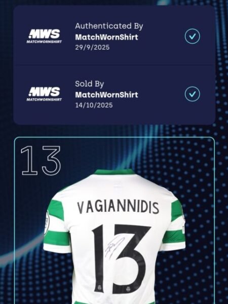GEORGIOS VAGIANNIDISGEORGIOS VAGIANNIDIS – SPORTING LISBON – MATCH-ISSUED AND SIGNED JERSEY – CHAMPIONS LEAGUE – SPORTING LISBON vs KAIRAT ALMATY (4-1, 18/09/2025)