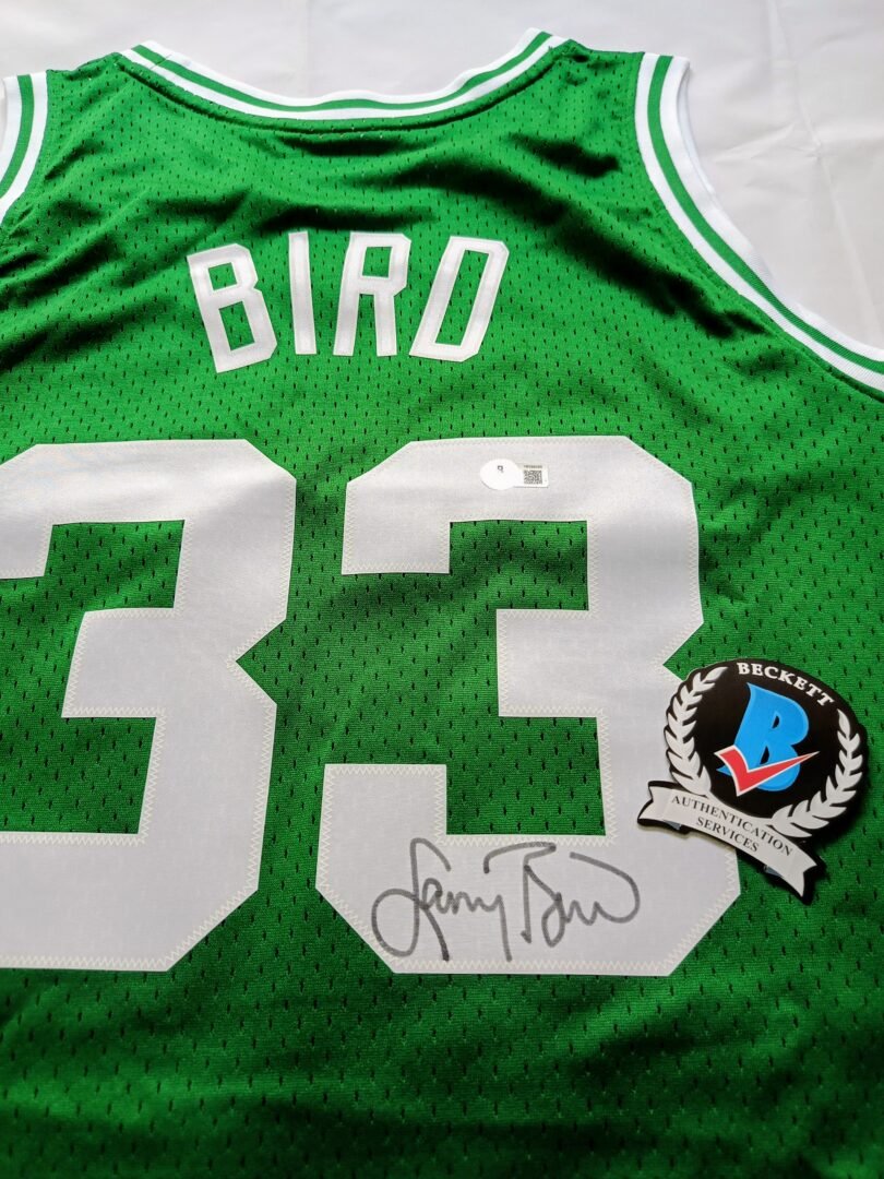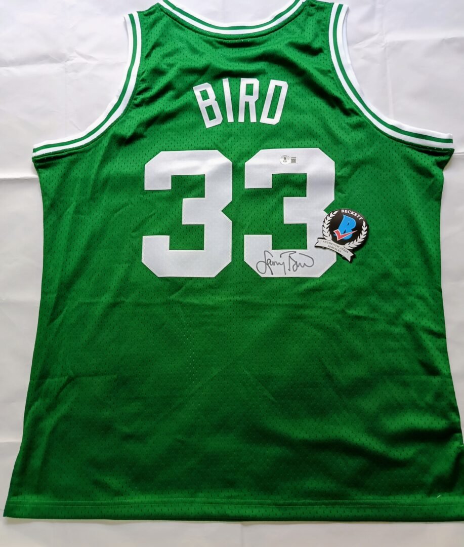 COLLECTABLE BOSTON CELTICS JERSEY SIGNED BY -3X NBA CHAMPION -2X NBA FINALS MVP -12 NBA ALL STAR -3X NBA MVP THE LEGEND AND HALL OF FAMER LARRY BIRD COA BECKETT