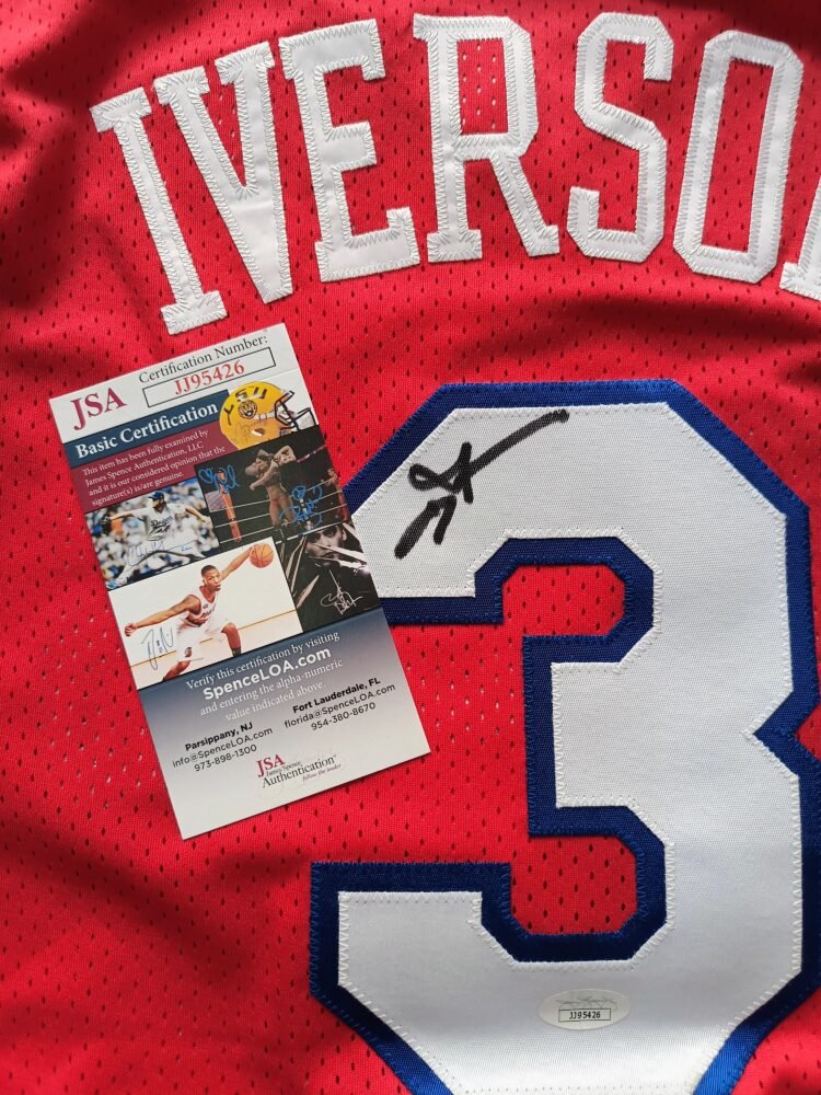 COLLECTABLE OFFICIAL ADIDAS HARDWOOD SHIRT SIGNED BY THE NBA STAR AND HALL OF FAMER ALLEN IVERSON COA JSA