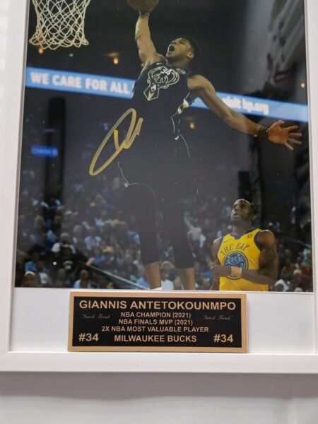 Giannis AntetokounmpoCOLLECTABLE AUTOGRAPH BY THE 2X NBA MVP, 1X FINALS MVP GIANNI ANTETOKOUNMPO FRAMED 33*23cm