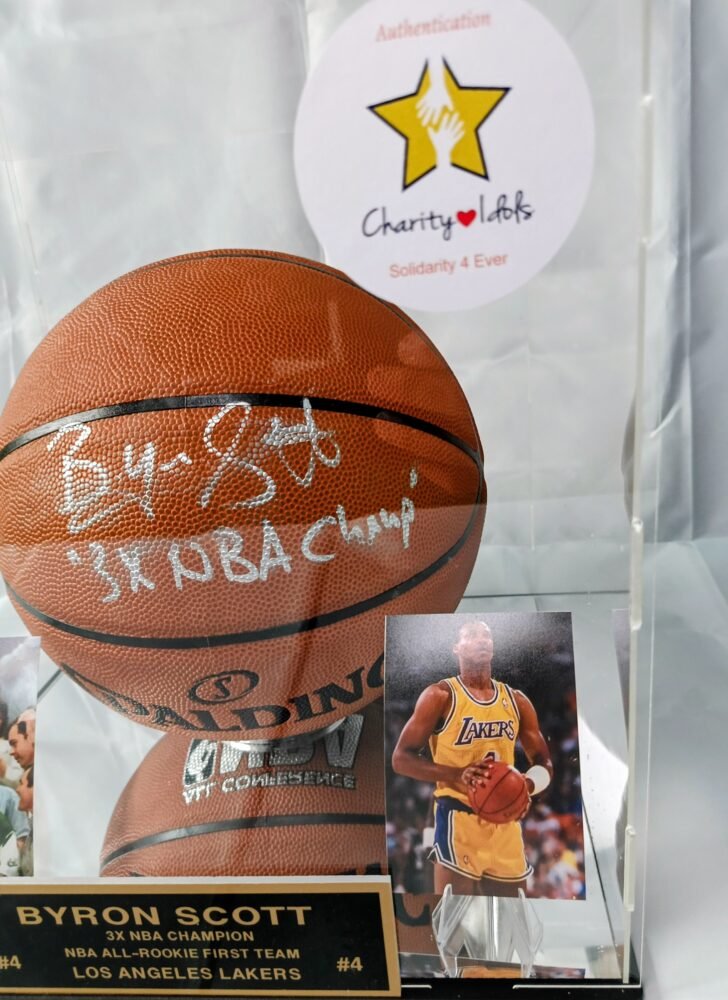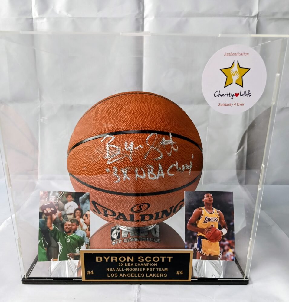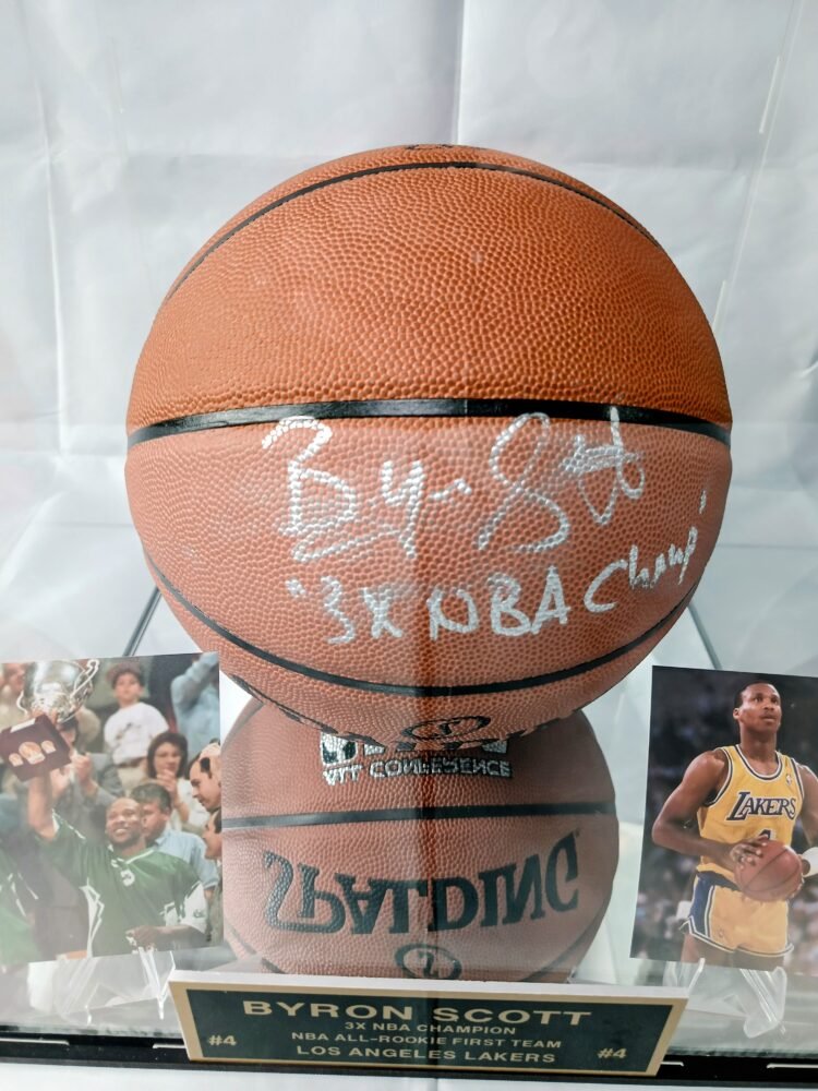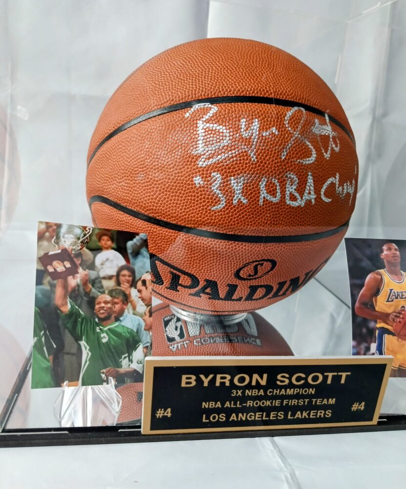COLLECTABLE OFFICIAL WILSON BASKETBALL NBA EDITION IN A DISPLAY WITH A MIRROR SIGNED BY THE LEGEND OF NBA AND PANATHINAIKOS B.C BYRON SCOTT
