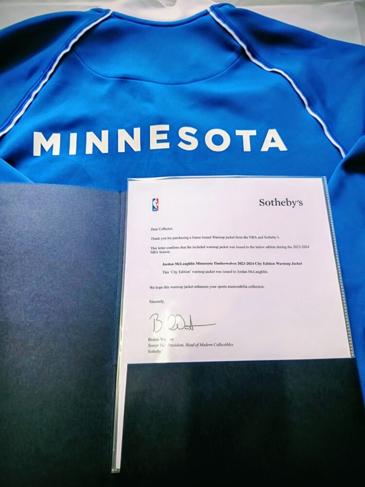 GAME ISSUED WARM-UP JACKET JORDAN MCLAUGHLIN MINNESOTA TIMBERWOLVES COA NBA