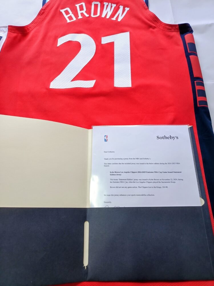 MATCH ISSUED SHIRT KOBE BROWN SACRAMENTO KINGS- LOS ANGELES CLIPPERS 104-88 (22/11/24) NBA EMIRATES CUP, COA NBA