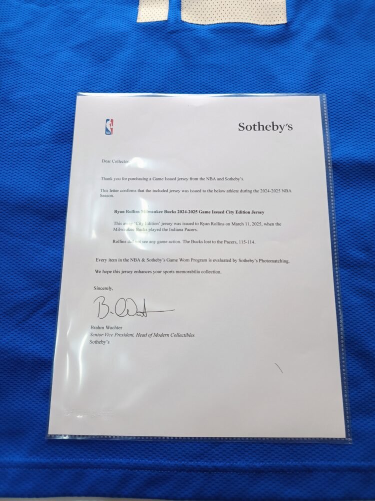 MATCH ISSUED SHIRT RYAN ROLLINS MILWAUKEE BUCK’S – INDIANA PACERS 114-115 (11/04/25) NBA REGURAL SEASON COA NBA