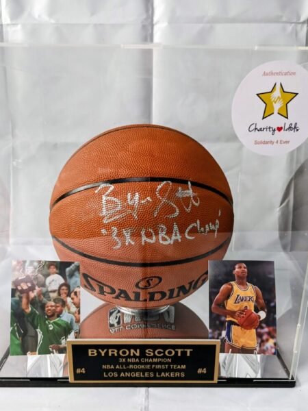 Byron ScottByron ScottCOLLECTABLE OFFICIAL WILSON BASKETBALL NBA EDITION IN A DISPLAY WITH A MIRROR SIGNED BY THE LEGEND OF NBA AND PANATHINAIKOS B.C BYRON SCOTT