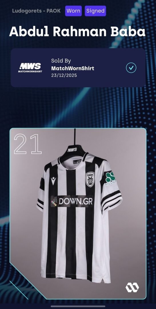 ABDUL RAHMAN BABA – PAOK – MATCH WORN (UNWASHED) JERSEY – LUDOGORETS VS PAOK (3-3, 11/12/2025) – UEFA EUROPA LEAGUE