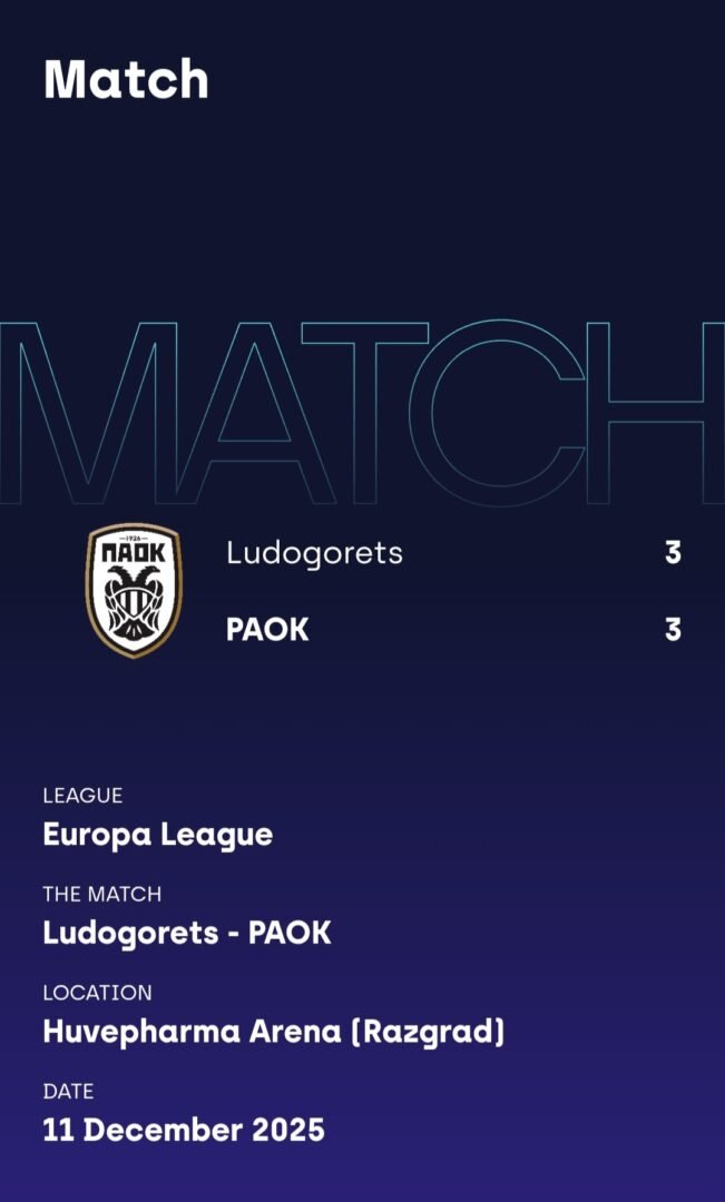 ΑΓΩΝΑΣ: ΛΟΥΝΤΟΓΚΟΡΕΤΣ VS ΠΑΟΚ (3-3, 11/12/2025)