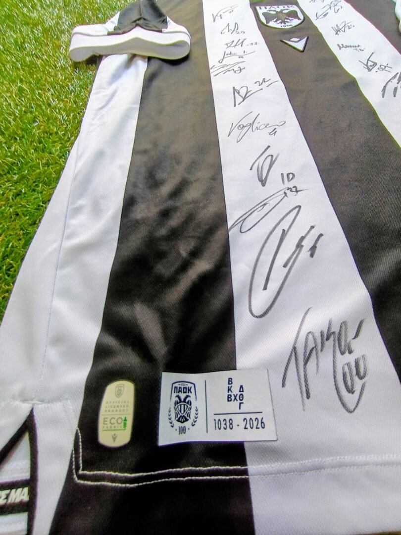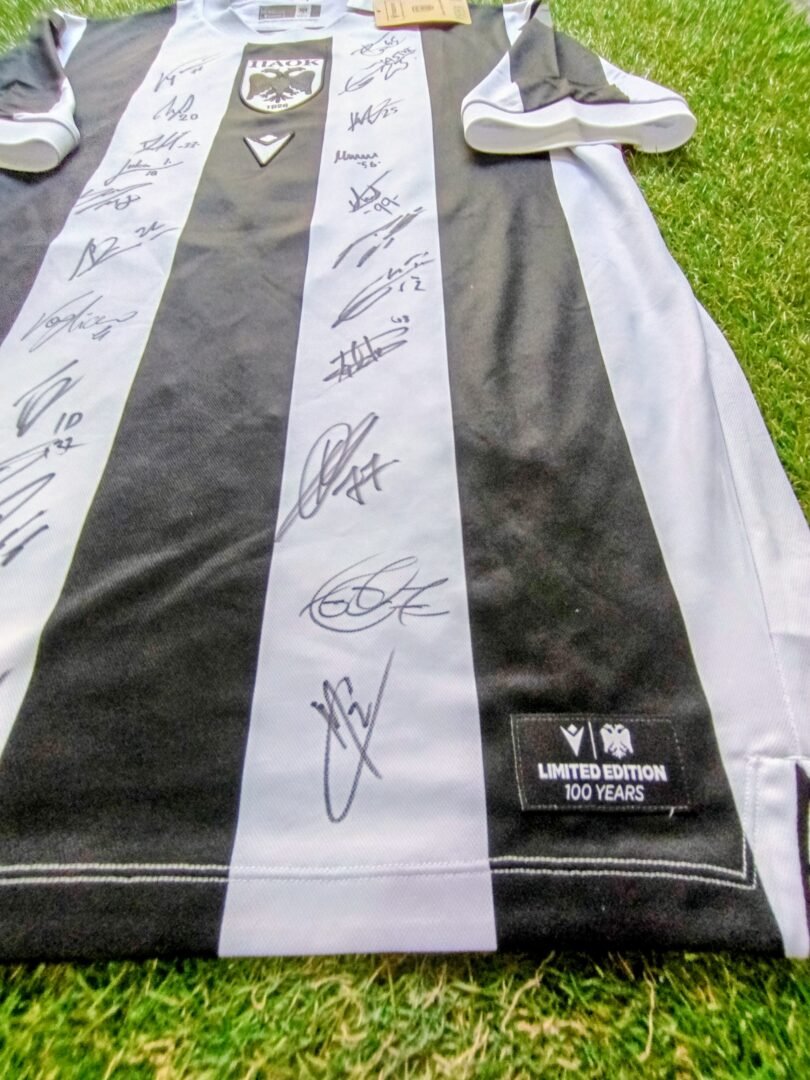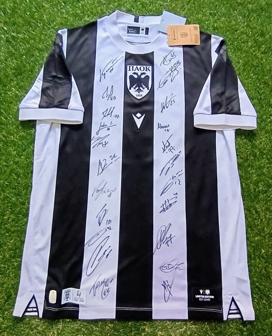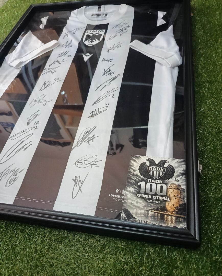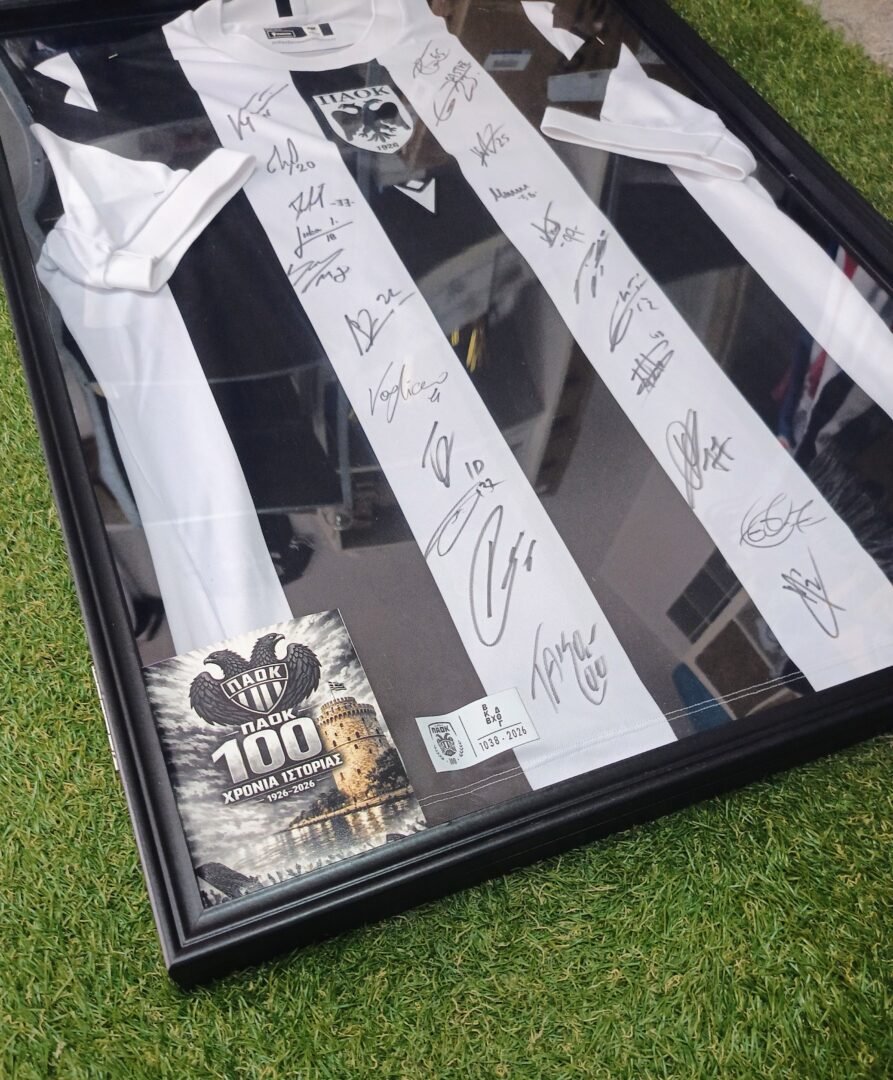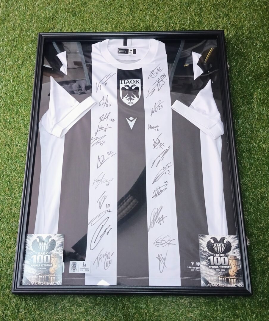 COLLECTABLE ANNIVERSARY JERSEY ( 1038-2026) PAOK F.C 100 YEARS FRAMED SIGNED BY ALL THE TEAM