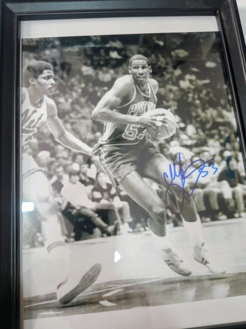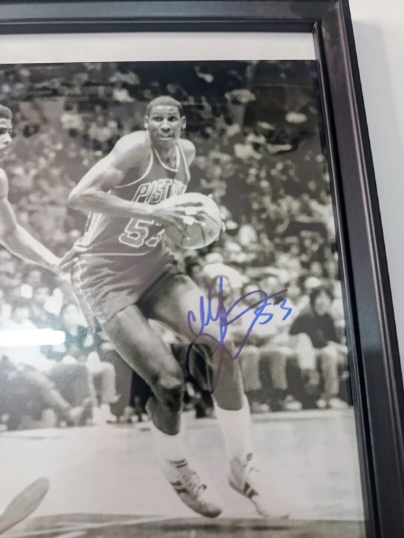 COLLECTABLE AUTOGRAPH BY THE STAR OF DETROIT PISTONS CHICAGO BULLS AND PAOK CLIFF LEVINGSTON FRAMED 33*23cm