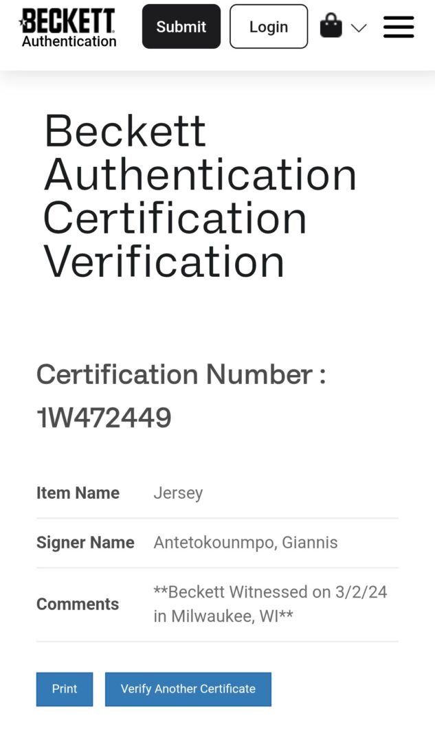 COLLECTABLE JERSEY NBA ALL STAR 2020 SIGNED BY THE 1X NBA CHAMPION 1X FINALS MVP 2X NBA MVP SUPER STAR OF GREEK NATIONAL TEAM GIANNI ANTETOKUNMBO COA BECKETT