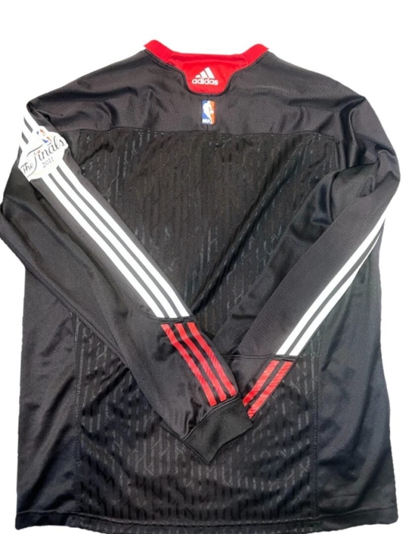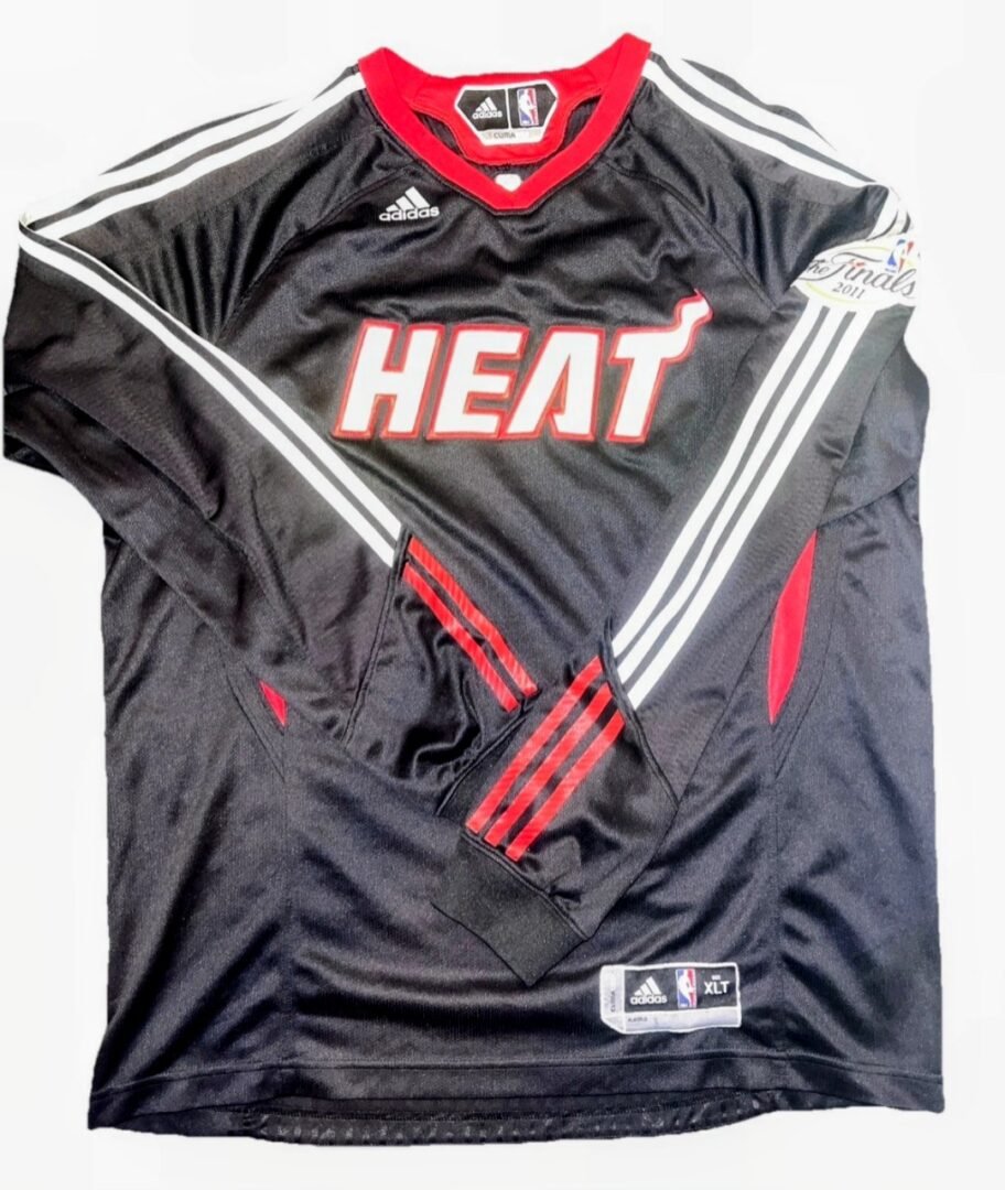 COLLECTABLE MATCH WORN WARM UP SHIRT AT THE NBA FINALS 2011 BY THE -3X NBA CHAMPION – 1X NBA FINALS MVP -12X ALL STAR AND HALL OF FAMER DWYANE WADE MIAMI HEAT – DALLAS MAVERICKS NBA FINALS 2011