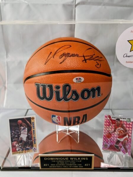 Dominique WilkinsCOLLECTABLE OFFICIAL WILSON BASKETBALL NBA EDITION IN A DISPLAY WITH A MIRROR SIGNED BY THE LEGEND AND HALL OF FAMER DOMINIQUE WILKINS