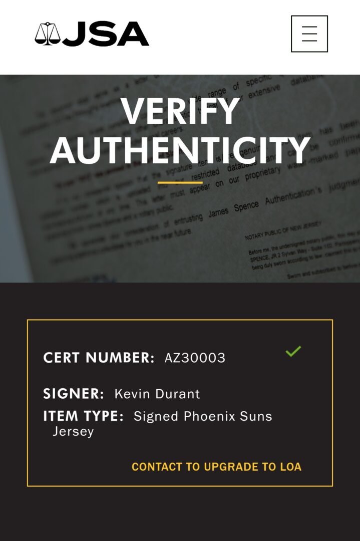 COLLECTABLE OFFICIAL NIKE JERSEY PHOENIX SUNS SIGNED BY -2X NBA CHAMPION -2X NBA FUNALS MVP -16 NBA ALL STAR 2014 NBA MVP KEVIN DURANT COA JSA