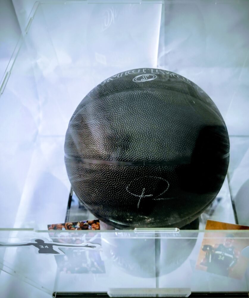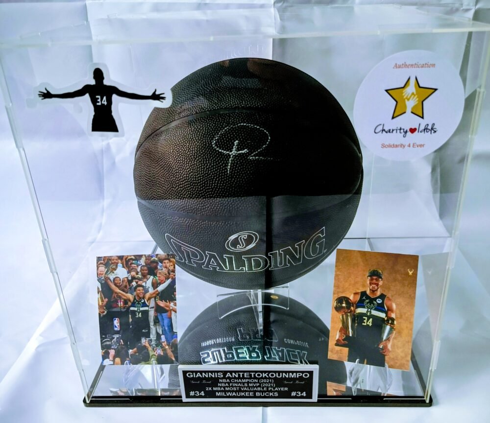 ΕΠΙΣΗΜΗ ΜΠΑΛΑ SPALDING ΣΕ ΘΗΚΗ ΠΛΕΞΙΓΚΛΑΣ ΜΕ ΚΑΘΡΕΦΤΗ ΥΠΟΓΕΓΡΑΜΜΈΝΗ ΑΠΟ ΤΟΝ ΣΟΥΠΕΡ ΣΤΑΡ ΤΟΥ ΝΒΑ ΚΑΙ ΤΗΣ ΕΘΝΙΚΗΣ ΕΛΛΑΔΑΣ ΓΙΑΝΝΗ ΑΝΤΕΤΟΚΟΎΜΠΟ