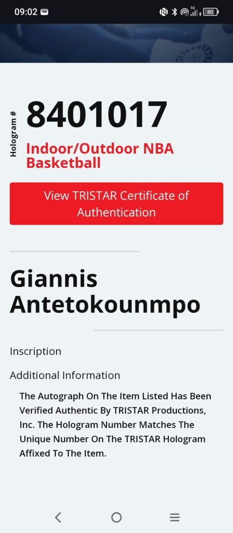 ΕΠΙΣΗΜΗ ΜΠΑΛΑ WILSON ΣΕ ΘΗΚΗ ΠΛΕΞΙΓΚΛΑΣ ΥΠΟΓΕΓΡΑΜΜΈΝΗ ΑΠΟ ΤΟΝ ΣΟΥΠΕΡ ΣΤΑΡ ΤΟΥ ΝΒΑ ΚΑΙ ΤΗΣ ΕΘΝΙΚΗΣ ΕΛΛΑΔΑΣ ΓΙΑΝΝΗ ΑΝΤΕΤΟΚΟΎΜΠΟ COA TRISTAR