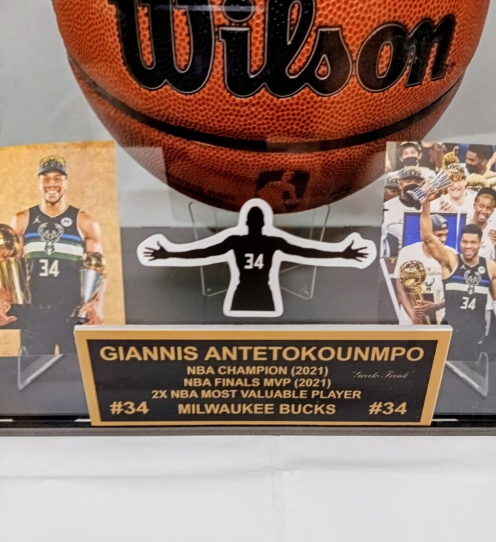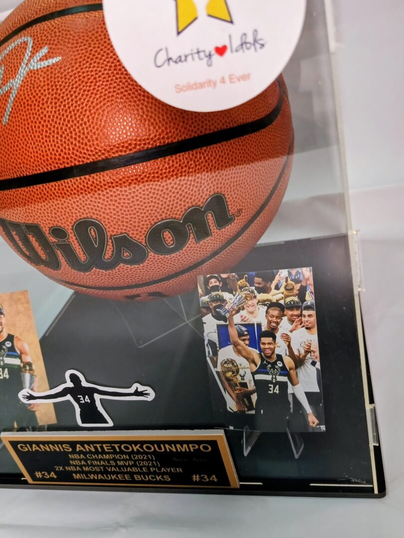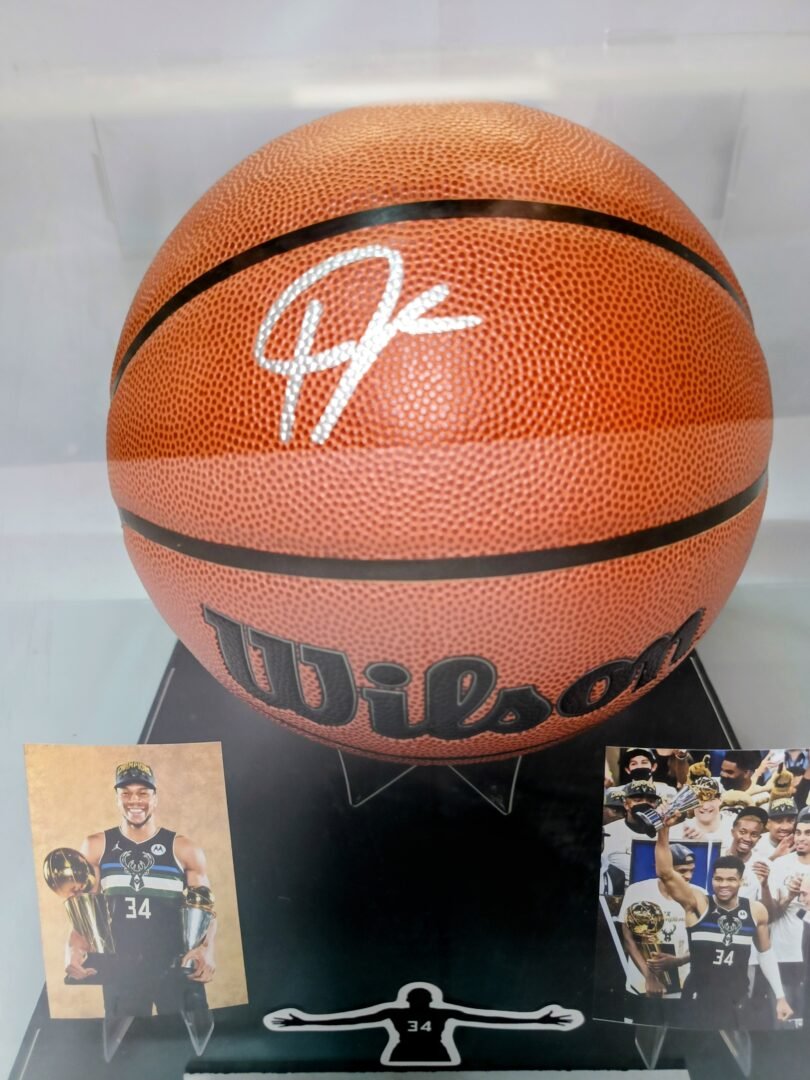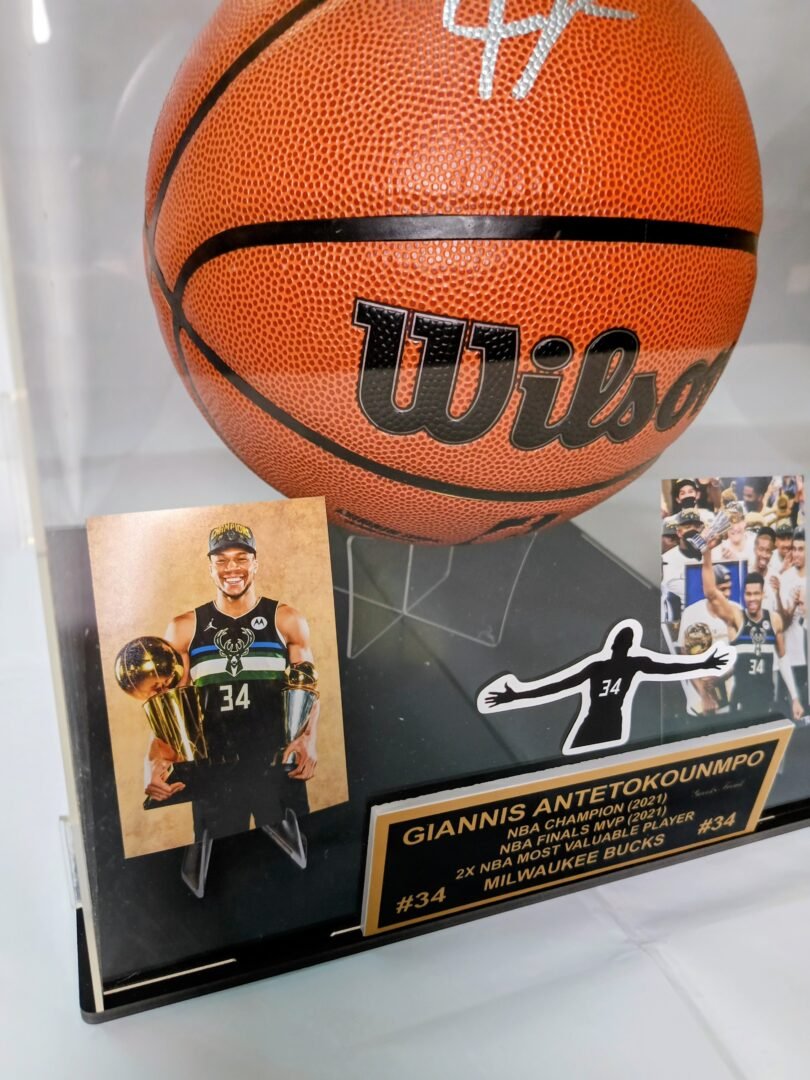 COLLECTABLE OFFICIAL WILSON BASKETBALL ON PLEXIGLASS DISPLAY SIGNED BY THE SUPERSTAR OF NBA AND GREEK NATIONAL TEAM GIANNI ANTETOKOUNMPO COA TRISTAR
