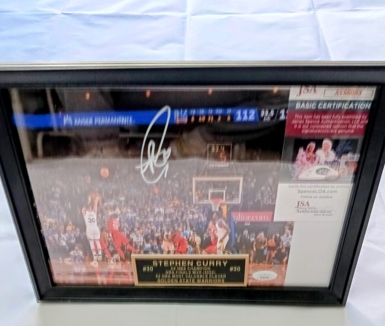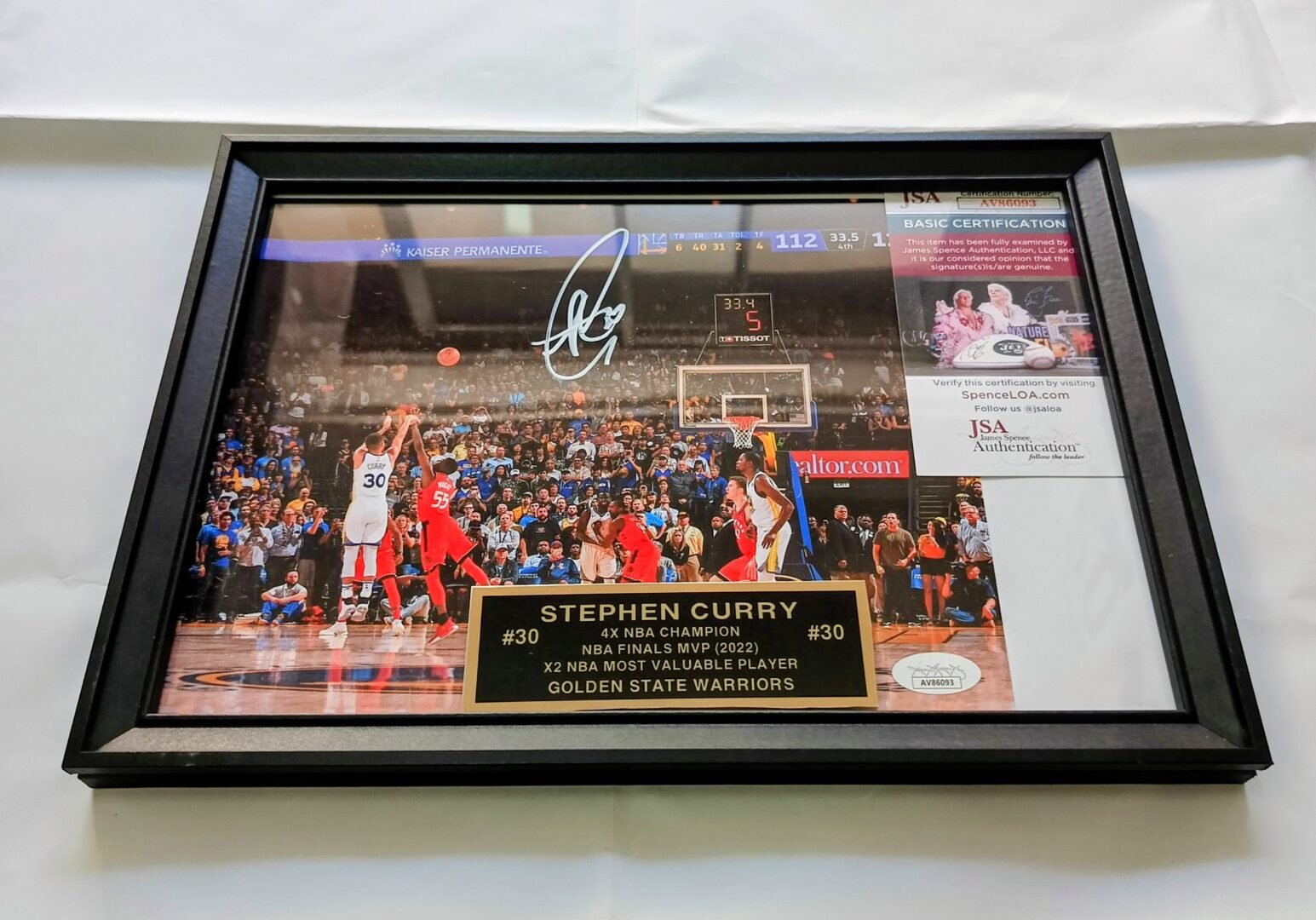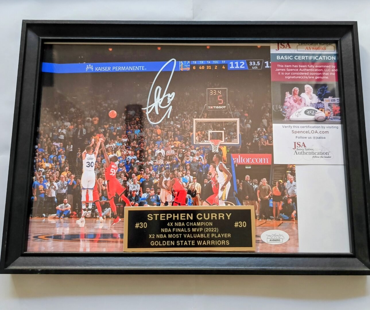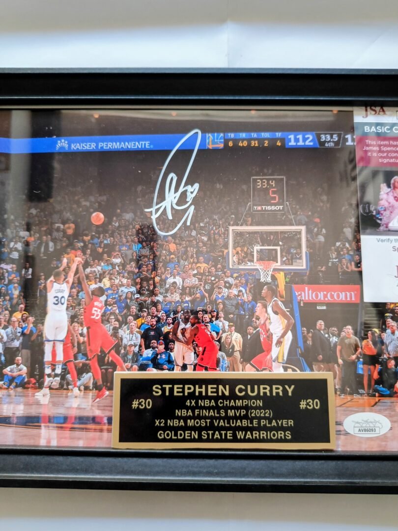 COLLECTABLE PHOTO FRAMED 30*20cm SIGNED BY THE GOAT -4X NBA CHAMPION – 1X NBA FINALS MVP -2X NBA MVP -12X ALL STAR AND FUTURE HALL OF FAMER STEPH CURRY COA JSA