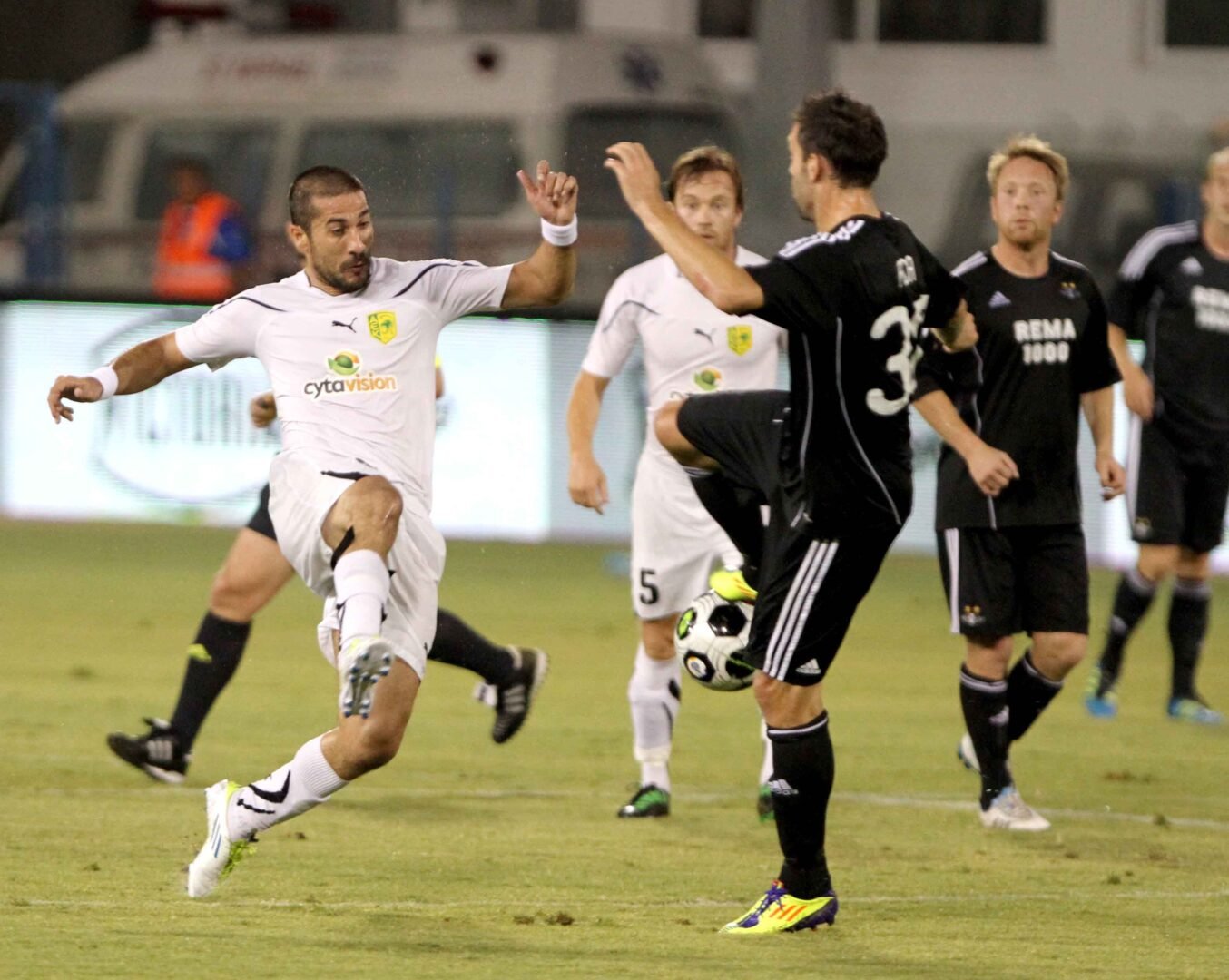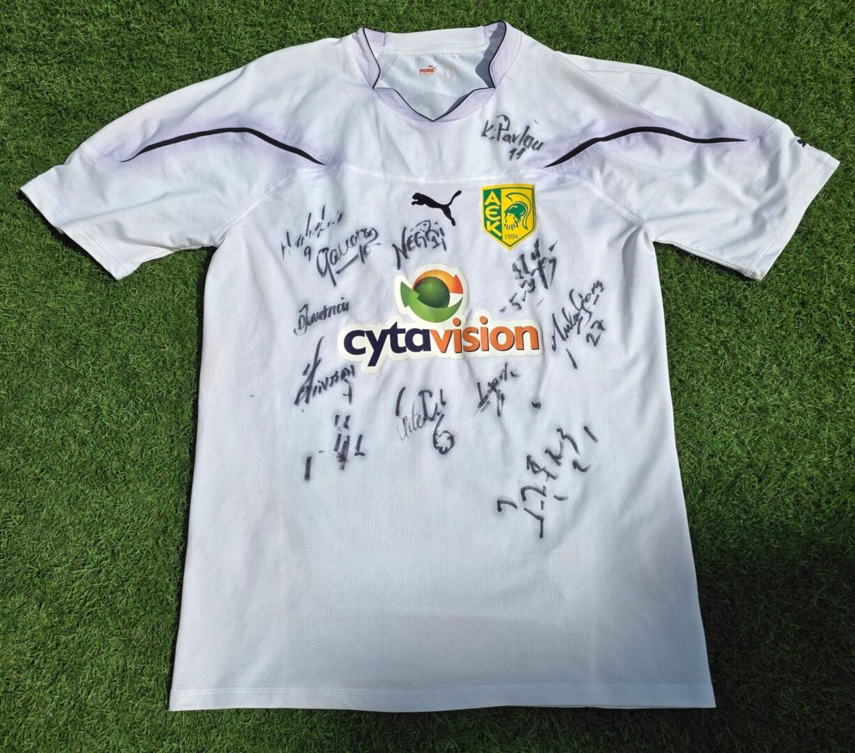GIANNIS SKOPELITIS – AEK LARNACA – MATCH WORN AND TEAM SIGNED JERSEY – AEK VS ROSENBORG (2-1, 25/08/2011) – SEASON 2011/2012