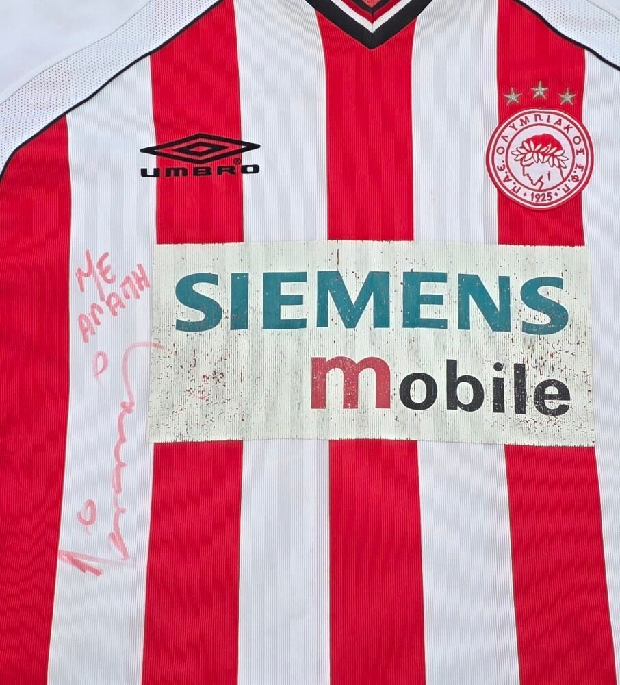 GIOVANNI – OLYMPIAKOS PIRAEUS – OFFICIAL SIGNED JERSEY – SEASON 2001/2002