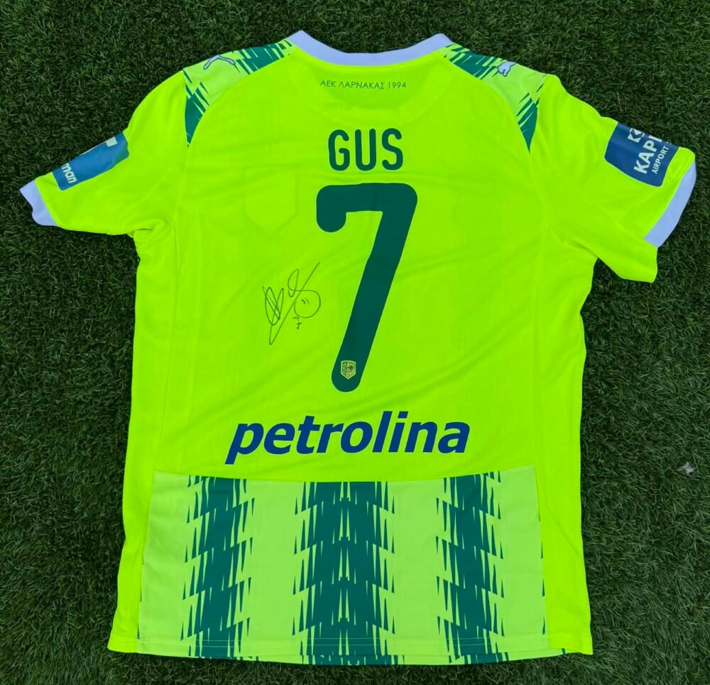 GUS LEDES – AEK LARNACA – MATCH WORN AND SIGNED JERSEY – STOIXIMAN CYPRUS LEAGUE – SEASON 2025/2026