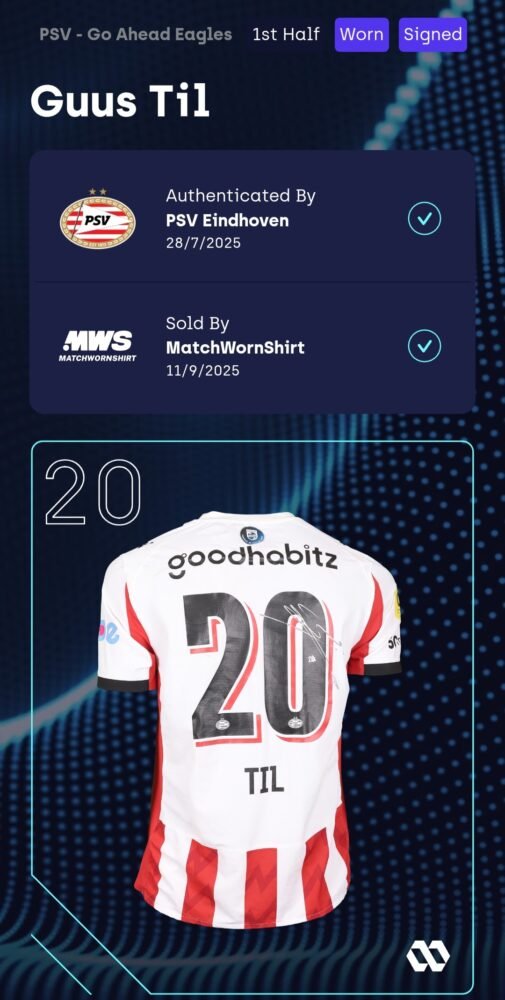 GUUS TIL – PSV EINDHOVEN – MATCH WORN AND SIGNED JERSEY – DUTCH SUPER CUP – PSV VS GO AHEAD EAGLES (2-1, 03/08/2025)