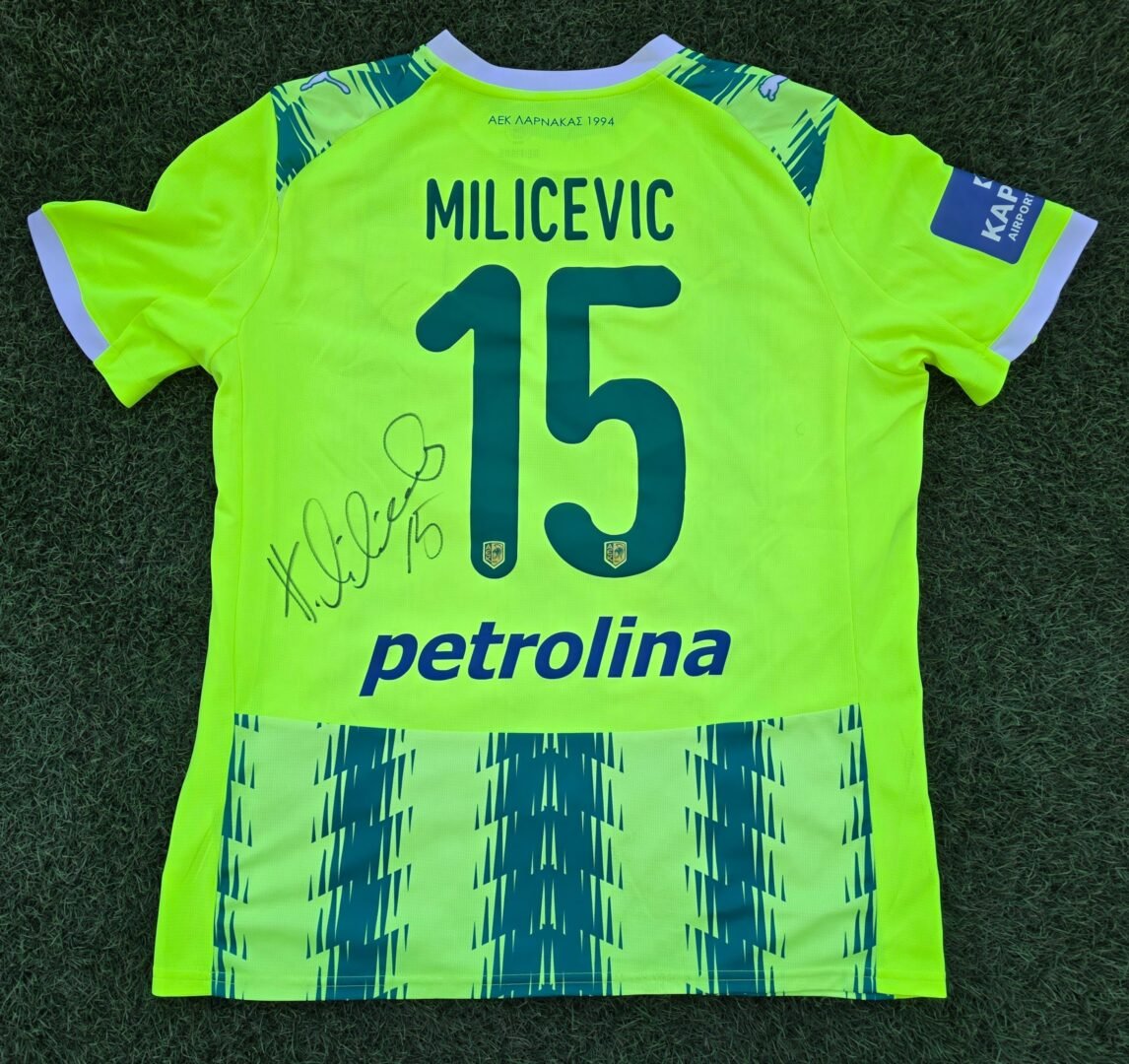 HRVOJE MILICEVIC – AEK LARNACA – MATCH WORN OR ISSUED AND SIGNED JERSEY – EUROPA LEAGUE QUALIFIERS – CELJE VS AEK (1-1, 24/7/2025)