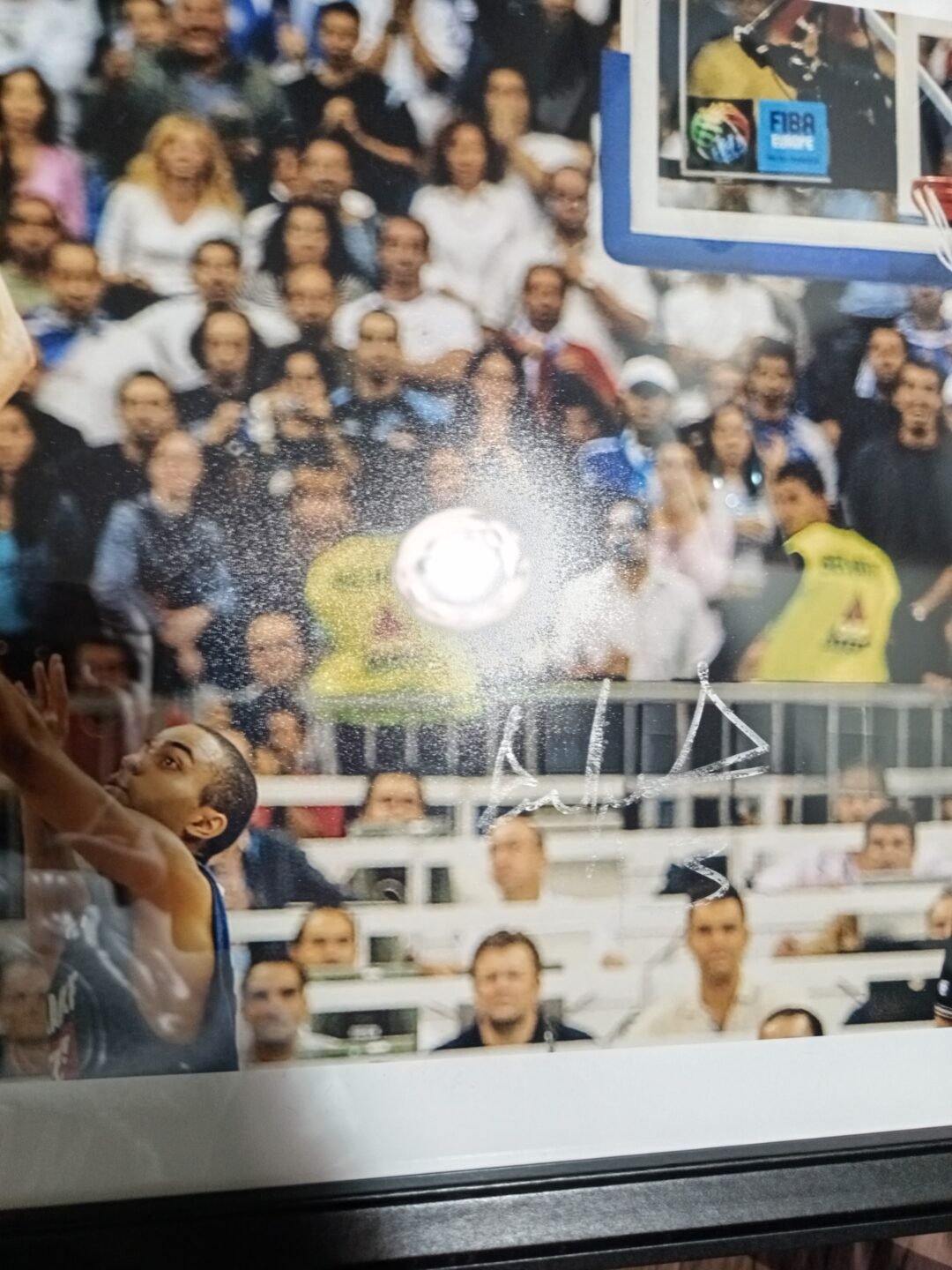 LARGE PHOTOGRAPH WITH NAMEPLATE FRAMED 40*30 FROM EUROBASKET 05 SIGNED BY DIMITRIS DIAMANTIDIS