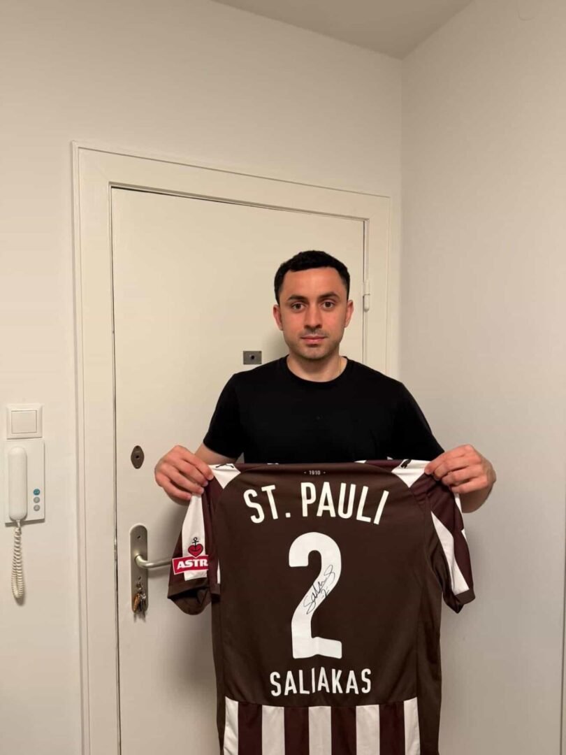 MATCH WORN AND SIGNED SHIRT MANOLIS SALIAKAS F.C ST.PAULI SEASON 2025/26 BUNDESLIGA