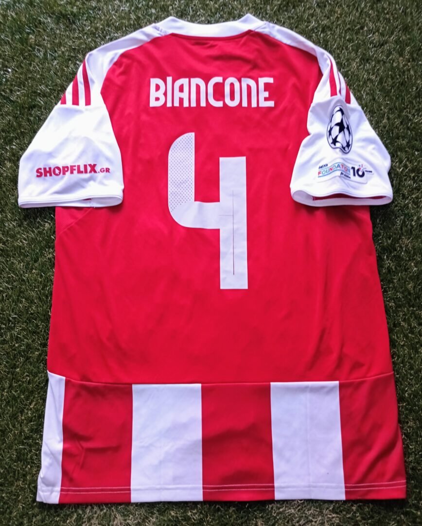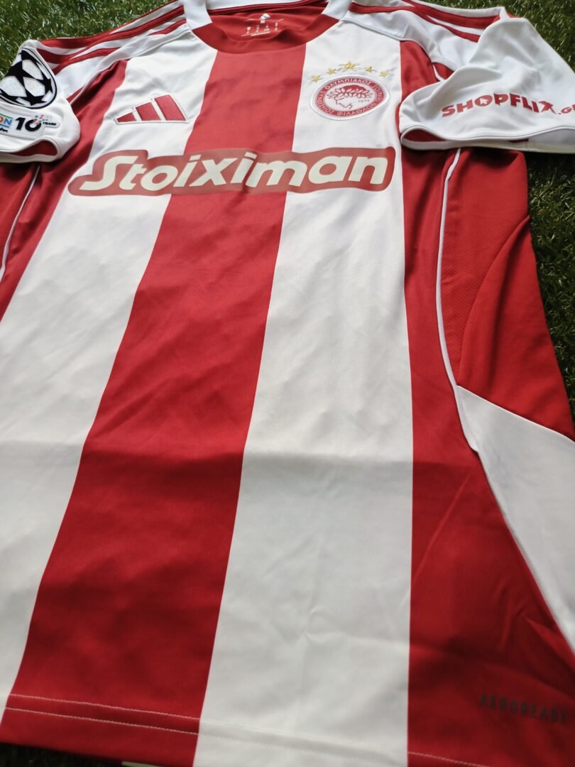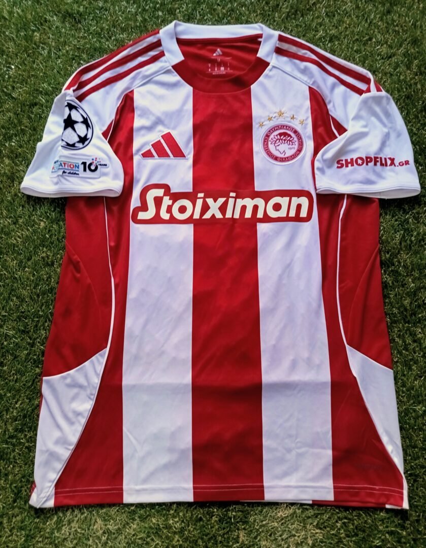 MATCH WORN SHIRT AND LITTLE DIRTY JIULIAN BIANCONE OLYMPIAKOS F.C SEASON 2025/26 CHAMPIONS LEAGUE