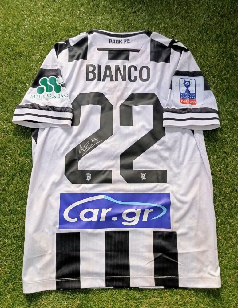 MATCH WORN SHIRT UNWASHED AND SIGNED ALESSANDRO BIANCO PAOK – LARISA 4-1 (29/10/25) GREEK CUP