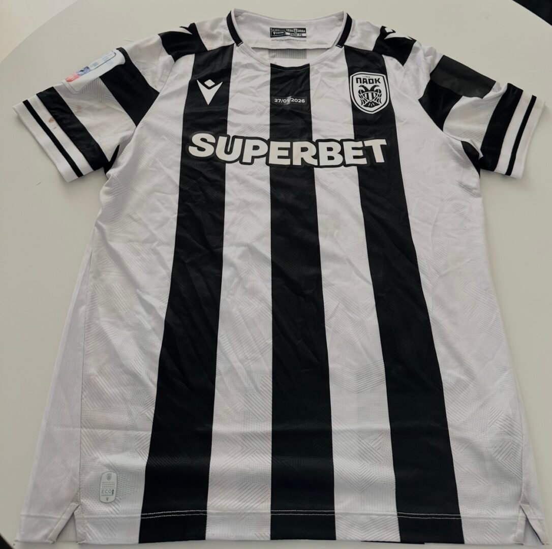 Giannis KonstanteliasMATCH WORN SHIRT UNWASHED GIANNIS KONSTANTELIAS PAOK – OFI 2-3 (25/04/26) GREEK CUP FINAL – COA BY EPO