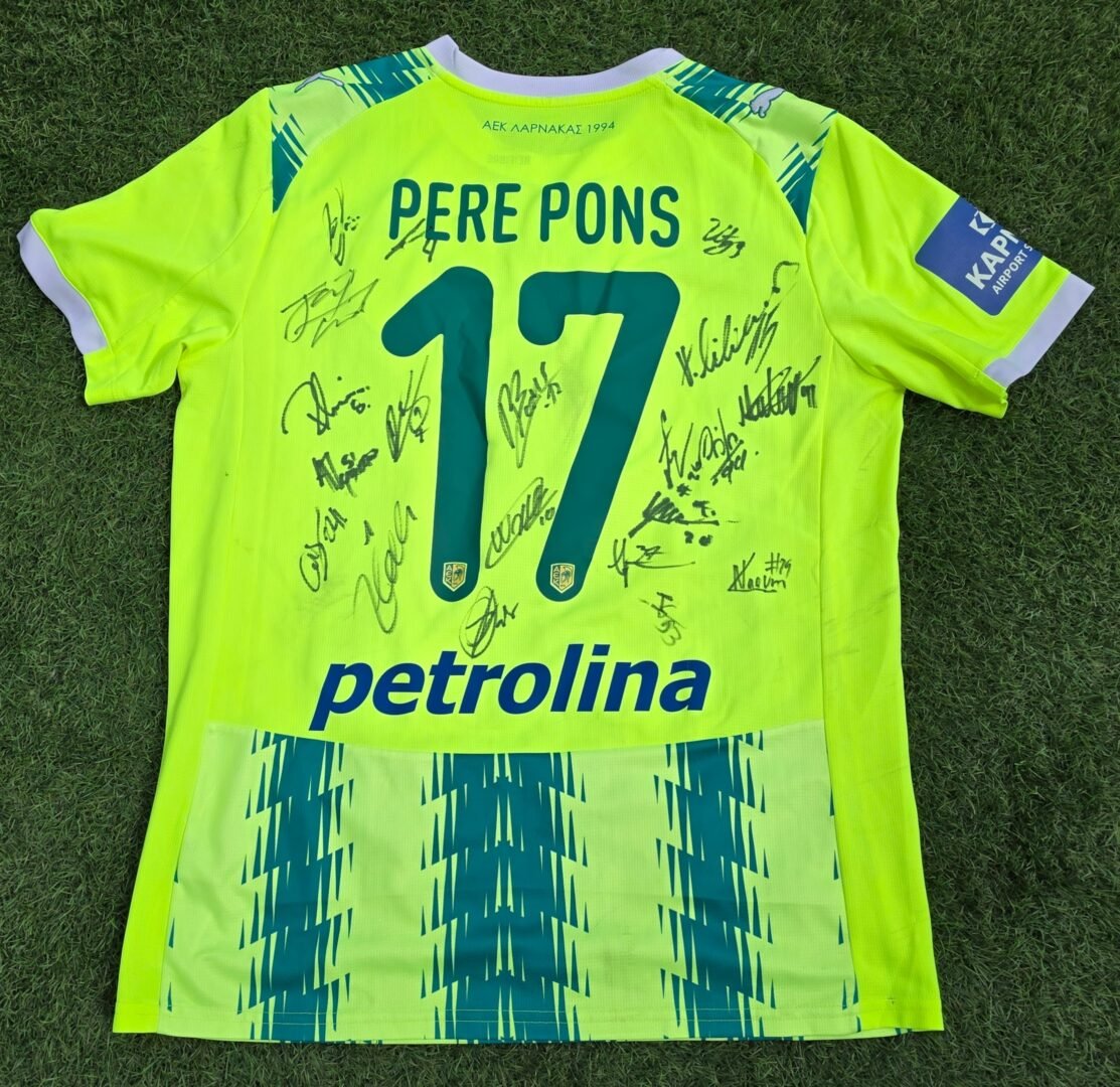 PERE PONS – AEK LARNACA – MATCH WORN OR MATCH ISSUED AND TEAM SIGNED JERSEY – CELJE VS AEK LARNACA (1-1, 24/07/2025) – UEFA EUROPA LEAGUE QUALIFIERS